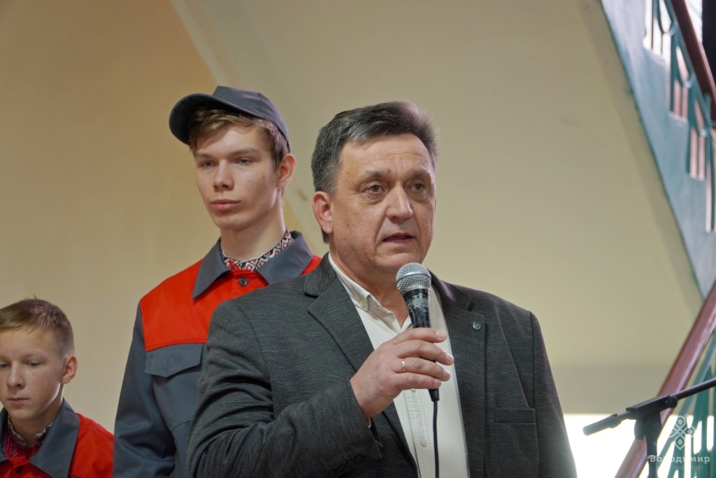 Звертаючись до присутніх – зазначив, що приємно спостерігати за хорошими змінами, які наразі відбуваються в Оваднівському відділенні, зокрема тривають ремонтні роботи корпусів, оновлюється техніка та навчальна база. Він додав, що регіональний коледж – найбільший заклад професійно-технічної освіти на Волині, що готує кваліфікованих фахівців, які є вкрай затребуваними сьогодні на ринку праці. Перший заступник міського голови проінформував, що Володимирська громада також сприяє, виділяючи кошти з місцевого бюджету на потреби навчального закладу. Відтак він привітав представників коледжу зі святом, побажав їм успіху, процвітання, студентам – цікавого навчання, освоєння професійних навичок і найшвидшої перемоги й миру в країні.