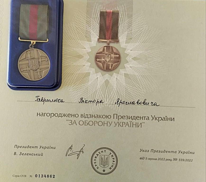 За особисту мужність, виявлену у захисті державного суверенітету та територіальної цілісності України, самовіддане виконання військового обов’язку 15 листопада 2024 року молодшого сержанта Віктора Гаврилюка удостоєно державної нагороди – ордена “За мужність” ІІІ ступеня.