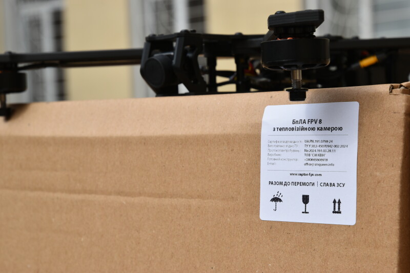 Для потреб військової частини 1141 Національної гвардії України спрямували 20 мультироторних БпЛА типу FPV 8 дюймів та 20 безпілотних літальних апаратів “Раптор 8” з денною камерою, портативний радіоелектронний засіб протидії безпілотникам Квертус AD G-6+, три DJI Mavic 3 Fly More Combo.