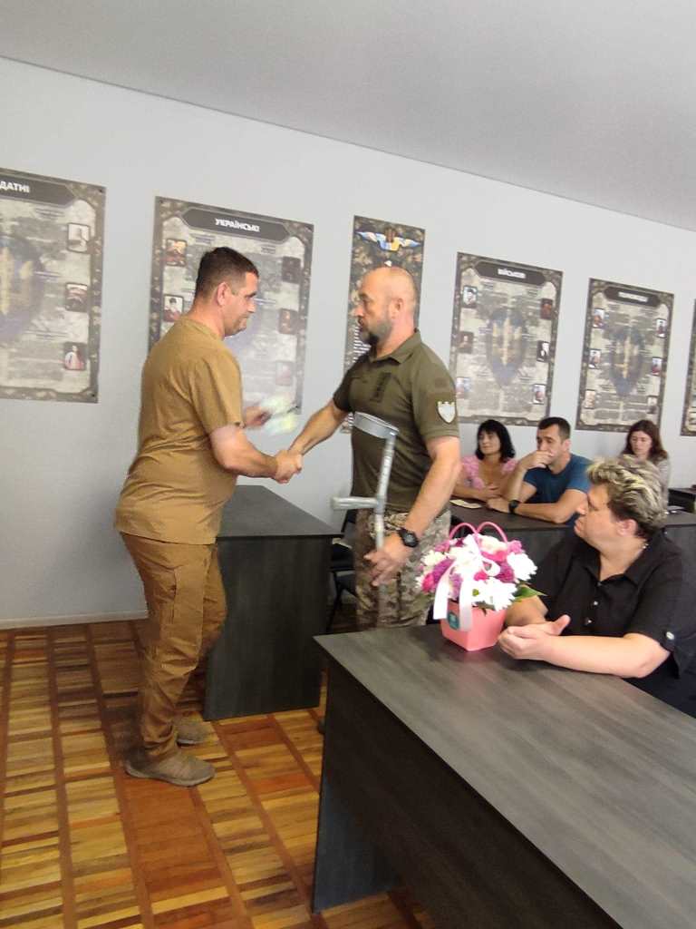 Також нагороджений командир 55 окремого батальйону територіальної оборони України, молодший сержант Сергій Скрипник відзнакою «За оборону України».