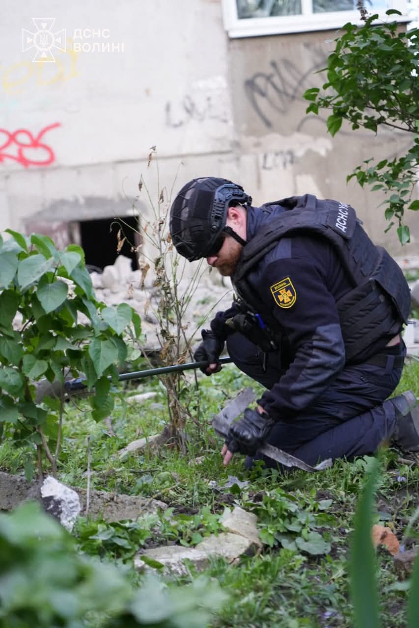 Внаслідок нічної російської атаки у Луцьку постраждали щонайменше 15 людей, з пошкодженої 9-поверхівки рятувальники та поліцейські евакуювали 5 людей та декілька домашніх тварин.