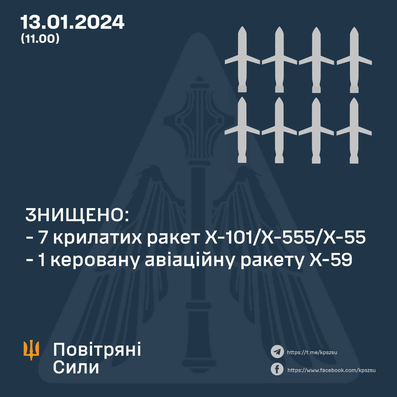 «Крім того, «нє імєющіє аналогов» російські ракети стають дедалі гіршими і летять бозна-куди! Втім це не значить, що вони не становлять загрози, скоріше навпаки! Тому будьте пильні, не ігноруйте тривогу, особливо із застосуванням «балістики». Тримаймо небо», – зазначили в Повітряних силах.