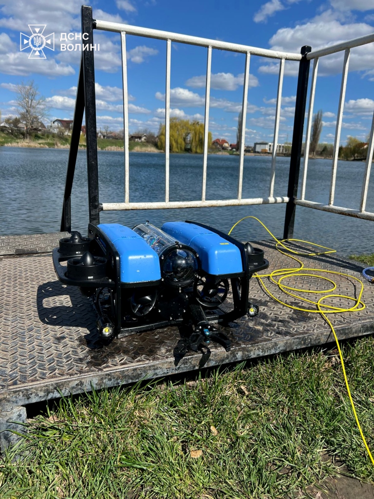 Співробітники групи водолазно-рятувальних робіт ДСНС Волині провели тренування з роботи на підводному дроні, що перебуває на озброєнні групи.