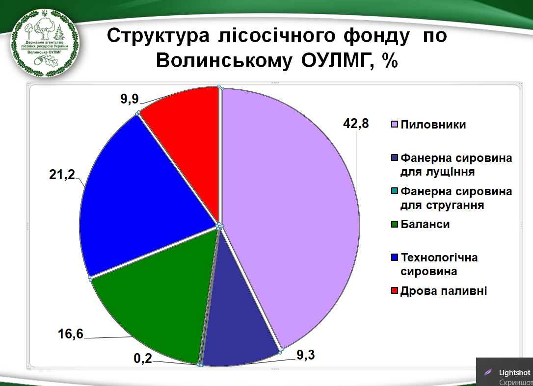 У результаті за звітний період відбір ділових лісоматеріалів від рубок головного користування становив 80 % і досяг 478,6 тис. кбм за рахунок максимального відбору спецсортиментів та пиловників вищих сортів.