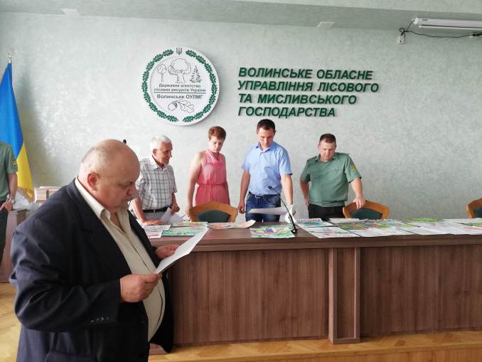 Напередодні Міжнародного дня захисту дітей у Волинському обласному управлінні лісового та мисливського господарства відбулося засідання журі обласних конкурсів малюнків на теми «Людина і ліс» та «Охорона праці у лісовій галузі очима дітей ». На обидва конкурси надійшло близько 150 робіт: 76 – на перший і 71 – на другий. Дитячі роботи виконані олівцями та фарбами. Діти зобразили життя лісу і людей.