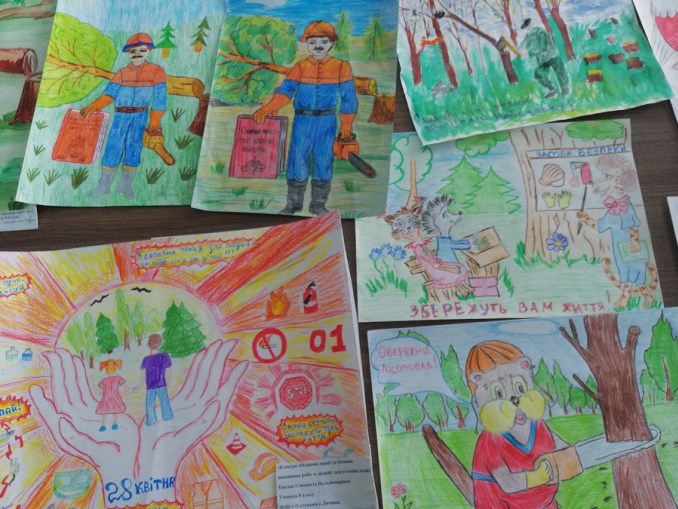 Журі визначило також переможців і в конкурсі малюнків «Охорона праці у лісовій галузі очима дітей». Тут І місце присуджено сестрам Дарині та Христині Подолець за роботу «Ліс рубай, та про безпеку дбай» (обидві – учениці ЗОШ І-ІІІ ст. м. Берестечко Горохівського району). Друге місця місце розділили між собою Олег Сусь (дев’ятикласник ОНЗ «ЗОШ І-ІІІ ступенів» с. Смідин Старовижівського району, керівник Лідія Цалай. Малюнок «Увага, валка лісу»), Олександр Борисюк (вже третьокласник НВК «ЗОШ І-ІІ ступенів – ДНЗ» с. Городок Маневицького району), Віктор Савченко (вихованець Скулинського учнівського лісництва, керівник Світлана Савченко). Третє місце посіли Богдана Палівода (учениця НВК «ЗОШ І-ІІІ ступенів – дитячий садок» імені Василя Корнелюка с. Кортеліси Ратнівського району. Малюнок «Безпека праці – понад усе!»), Максим Пилипчук (учень Маневицької ЗОШ № 1, керівник Анатолій Артишук. Малюнок «Припини роботу – збережи життя»), Ірина Пилипчук (учениця Маневицької ЗОШ № 1. Малюнок «Безпека праці – обов’язок кожного), Олена Борсук (учениця ЗОШ І-ІІІ ступенів с. Нуйно Камінь-Каширського району).