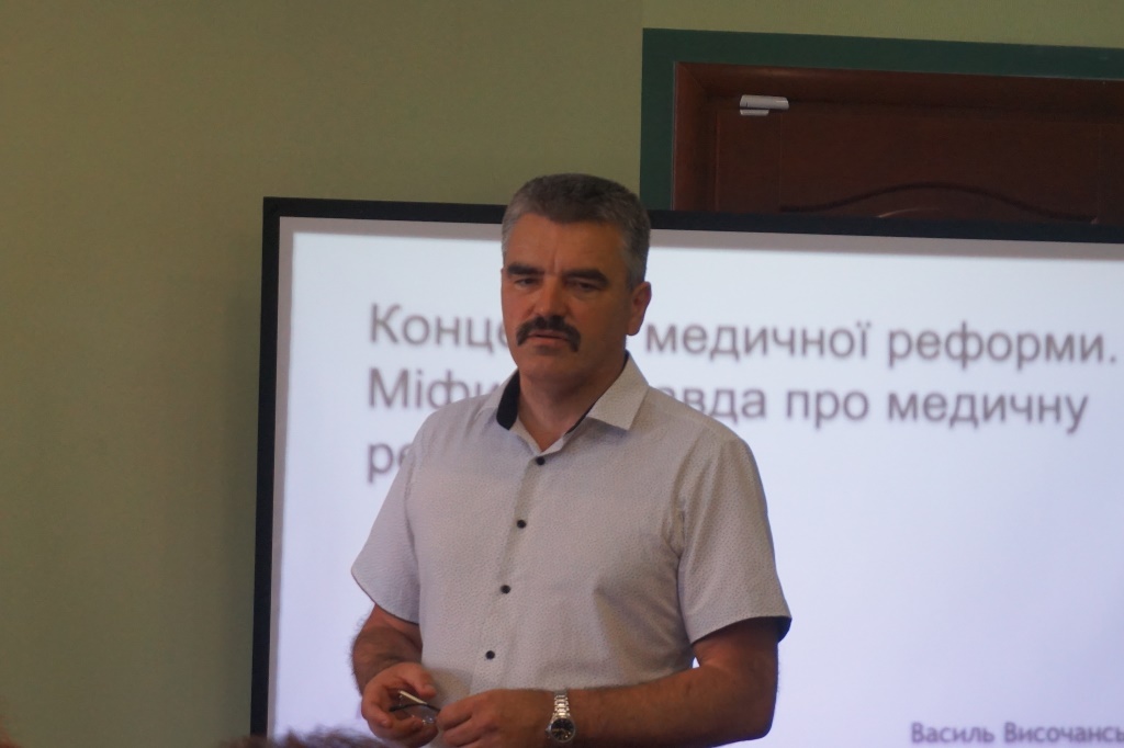 Тренер з управління закладом первинної медичної допомоги та регіональний координатор з підтримки реформи охорони здоров’я від Програми «U-LEAD з Європою» Василь Височанський розповів чимало про медичну реформу, про зміни у сфері охорони здоров’я та “eHealth” – Національній електронній системі охорони здоров’я, про порядок укладення, зміну та припинення договору про медичне обслуговування населення з Національною службою здоров’я України за програмою медичних гарантій, про ключові управлінські рішення керівника ЦПМД. Під тренінгу також обговорили фінансове планування доходів та видатків надавача ПМД на 2018 рік, електронні інструменти з фінансового планування. та економічну сторону практики та її бюджетування.