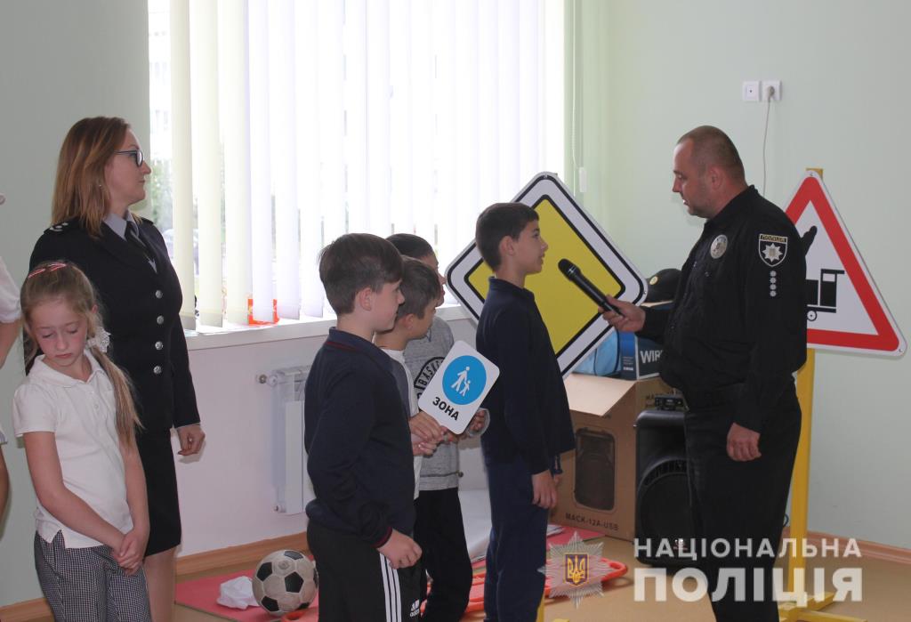 Працівники поліції в ігровій формі розповіли школярам правила дорожнього руху, ознайомили з особливостями дії різноманітних дорожніх знаки. Також нагадали учням як слід поводитися під час переходу проїжджої частини, обговорили оптимальні маршрути руху школярів з дому до навчального закладу, правила їзди на велосипеді та інше.