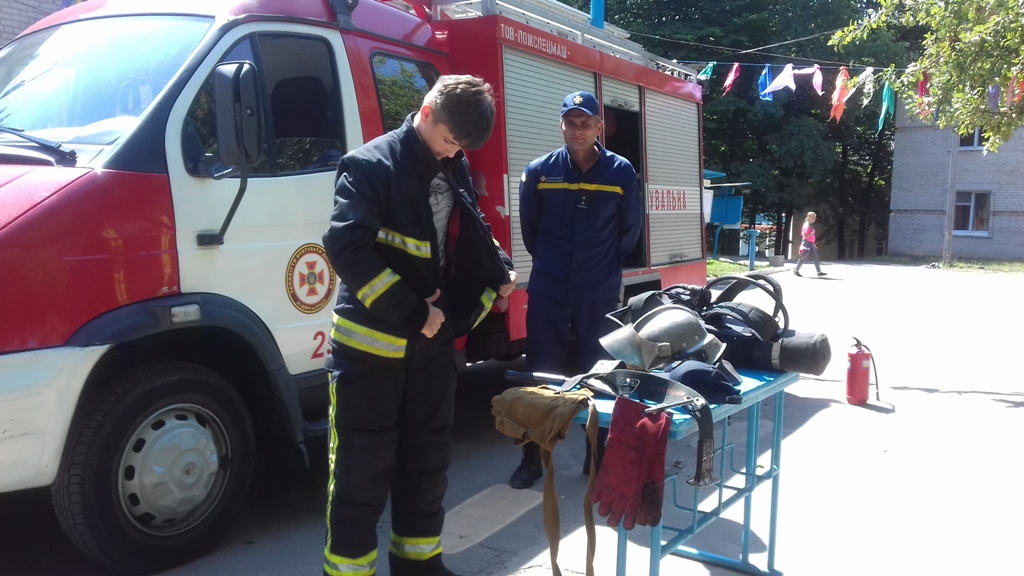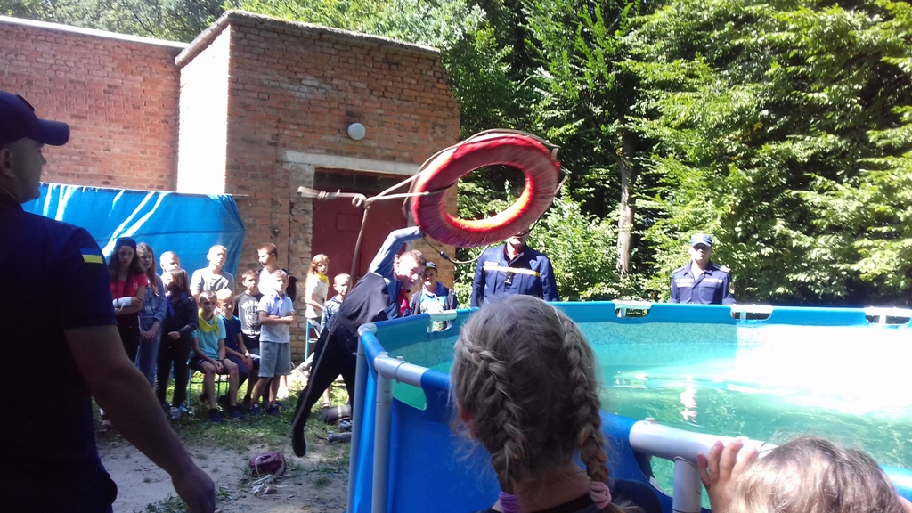 Рятувальники продемонстрували дітям технічні можливості пожежно-рятувальної техніки та спорядження та виконали гасіння умовної пожежі. Усі охочі також змогли подати воду пожежним стволом для гасіння імітованої пожежі, приміряти бойовий одяг та засоби захисту рятувальників. Особливу радість для дітей в спекотний день приніс прохолодний душ, який рятувальники влаштували за допомогою потужних водяних струменів із пожежного ствола!