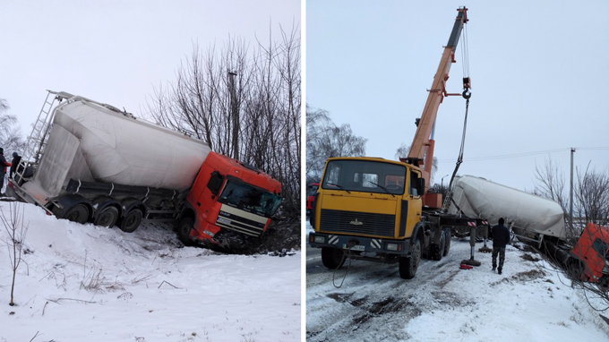 Зокрема близько 2:00 у місті Нововолинську на вулиці Луцькі з’їхав у кювет вантажний автомобіль DAF (муковоз). До аварійно-рятувальних робіт співробітники 5-ої Державної пожежно-рятувальної частини міста Нововолинська додатково залучили автокран і трактор комунального господарства. За допомогою рятувальної та допоміжної техніки провели буксирування автомобіля на безпечну ділянку дороги.