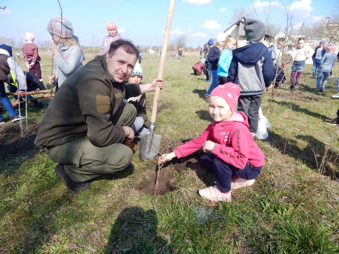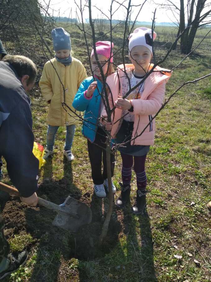 За школою – невелика площа поля, яка багато років уже пустує. Сонячного ранку сюди з радісними усмішками біжать діти – учні початкових класів із саджанцями у руках, аби посадити свої перші у житті деревця. Ось вони із нетерпінням чекають, поки їм старші викопають відповідні ямки до корінця. Деякі хлопчаки і самі залюбки хапають лопату. Спостерігають за вчителями, вчаться, як правильно розправляти корінь, рівно тримати стовбурець, загортати землю. Опісля – обовязково поливають саджанець.