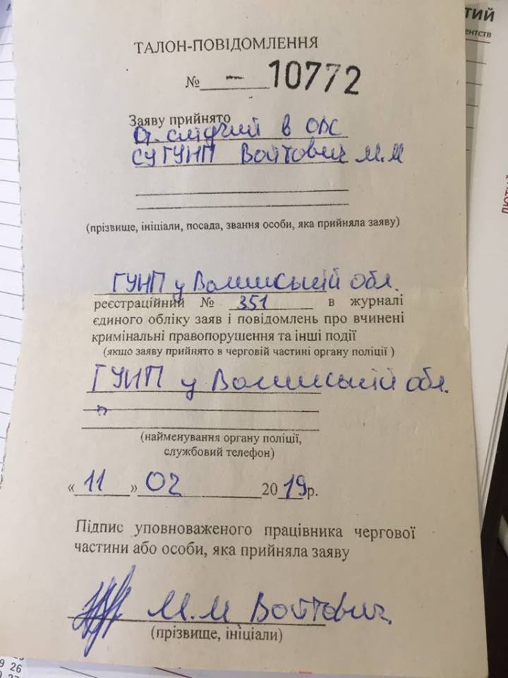 Оксана Петрук зазначає, що звернулась в ГУНП з заявою про погрози.