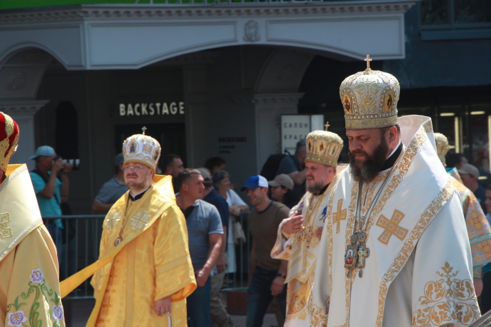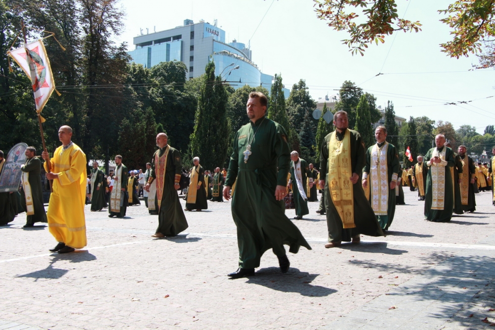 Потому розпочалося багатотисячне шестя від собору на Володимирську гірку. Традиційно волинське духовенство передувало у цій багатолюдній процесії. Перед пам’ятником благовірному князю відслужили молебень за Україну.
