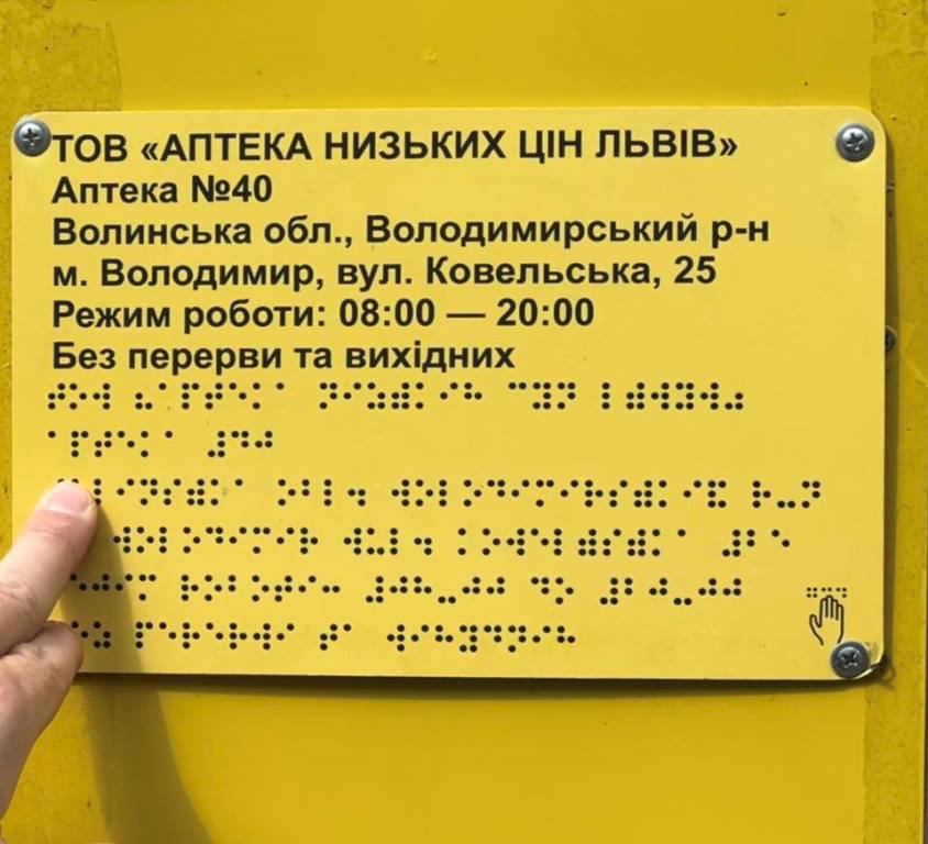 наявності кнопок виклику персоналу, тактильних елементів навігації та інформаційних матеріалів шрифтом Брайля.