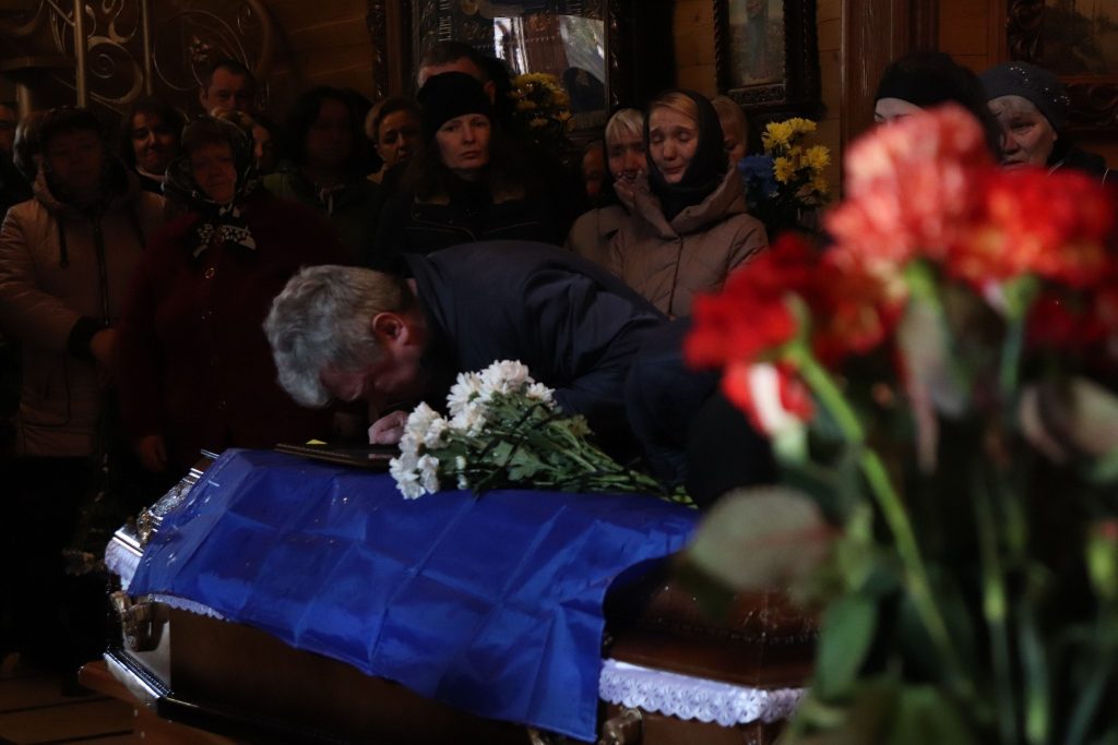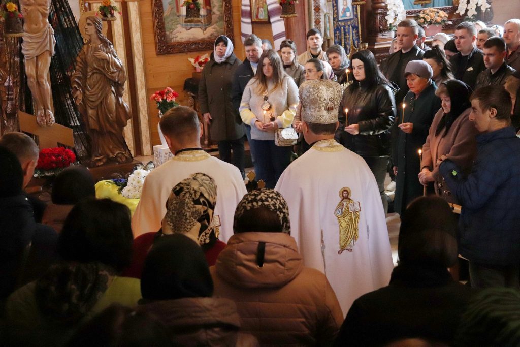 Разом із великою скорботною родиною сумує вся громада. Живим коридором шани, з оберемками квітів, під звуки військового оркестру містяни провели Героя-земляка до храму Віри, Надії, Любові, у якому священники відслужили чин похорону.