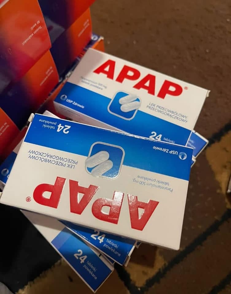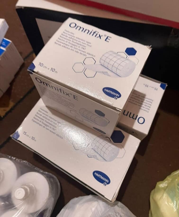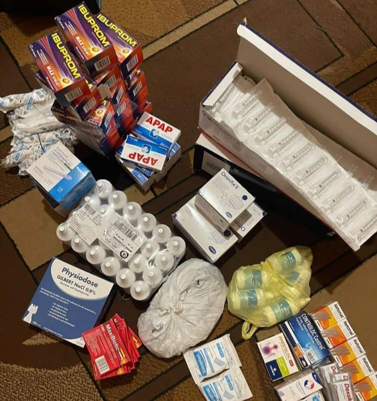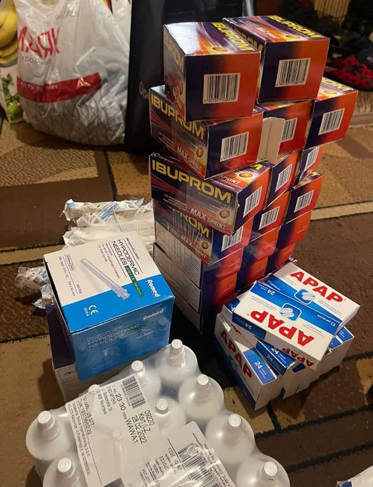 Отож, ми отримали лікарські препарати, які зможемо використовувати для нанесення на рани; фізрозчини для гігієни носа і очей для немовлят дітей і дорослих; протизапальні, анальгетичні та жарознижувальні препарати; пластирі; дезінфікуючі засоби для знезараження ран і шкіри.