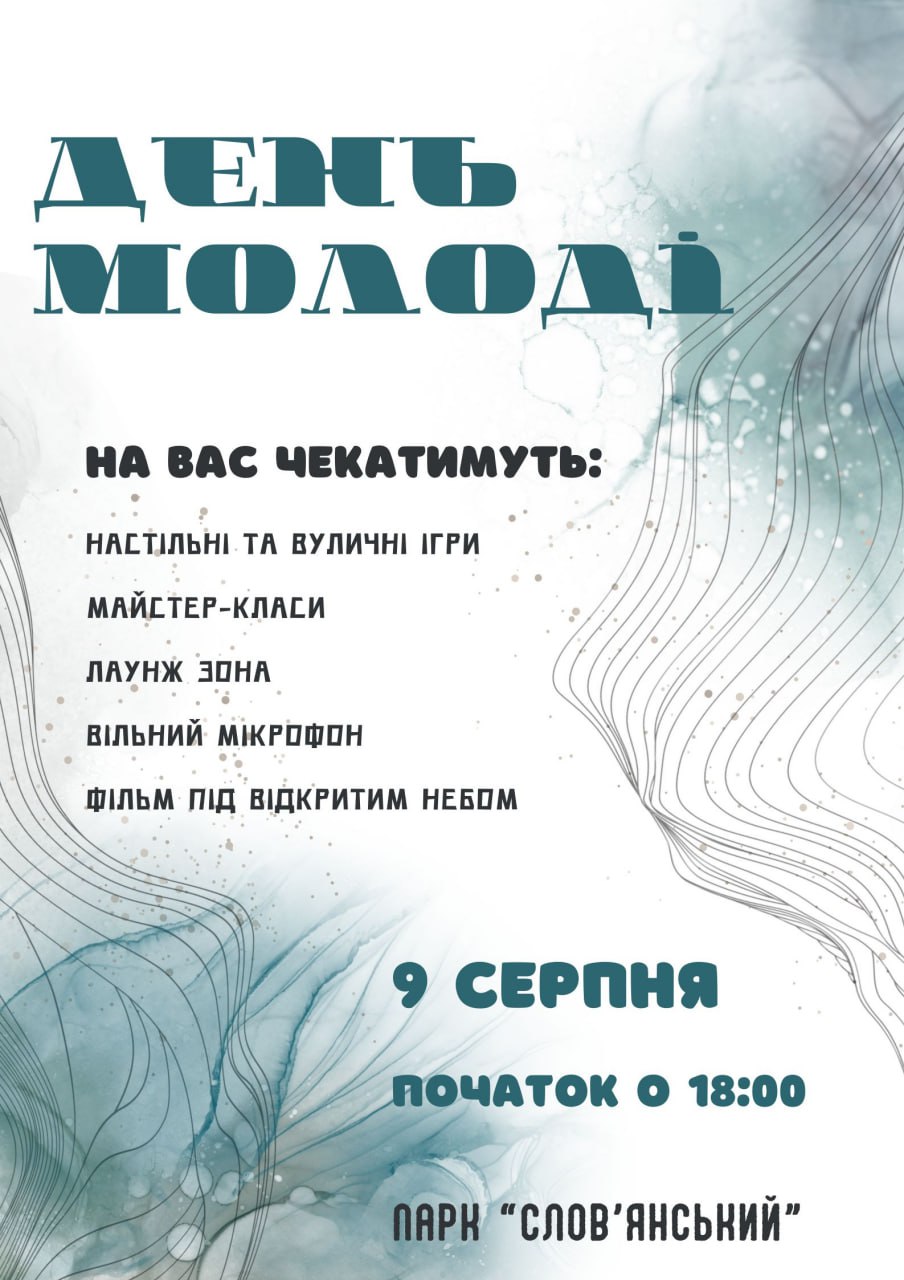 У цю суботу, 9 серпня, у парку “Слов’янський” о 18:00 розпочнуться святкові заходи до Дня молоді. На гостей чекає атмосфера активностей та затишку.