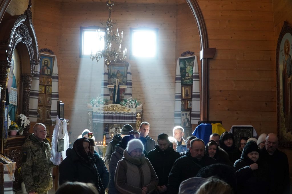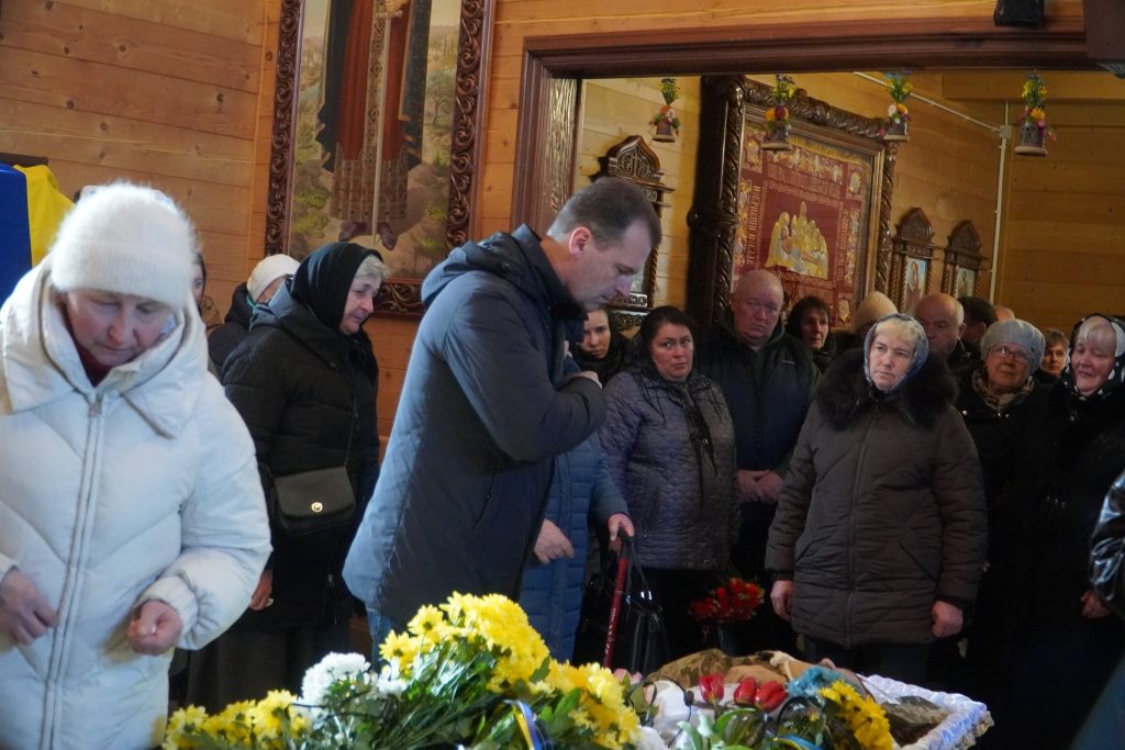 Попрощатися з воїном прийшло багато людей – рідні, друзі, побратими, жителі громади та міський голова Ігор Пальонка. Скорботний кортеж прибув до церкви Віри, Надії, Любові, де відбулося відспівування та заупокійна молитва. Люди формували живий коридор шани, ставали на коліна, тримали квіти, проводжаючи Героя в останню путь.