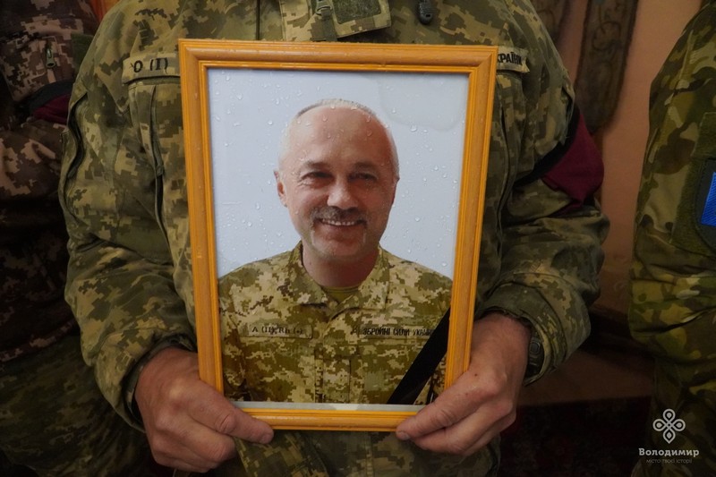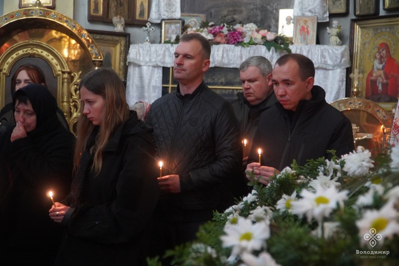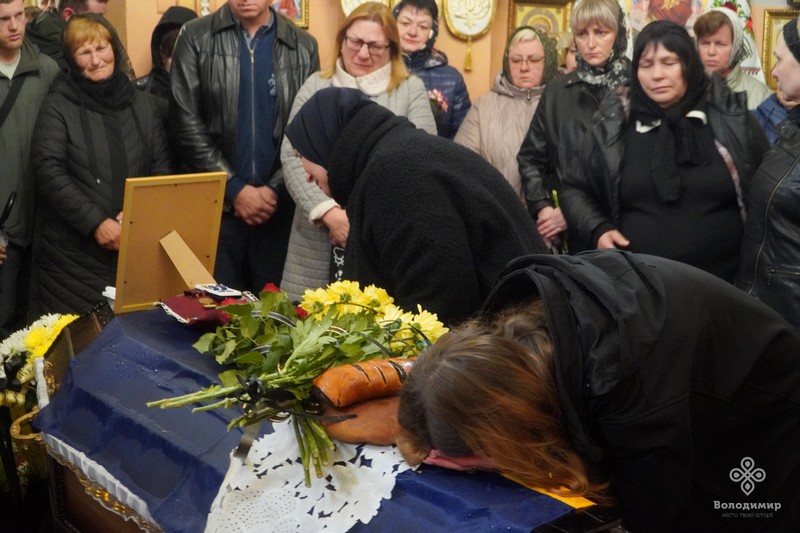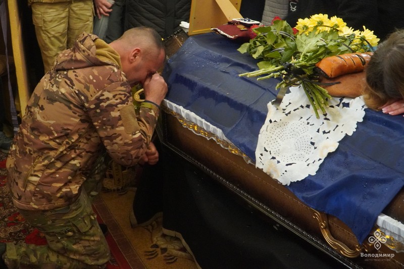 Під дощем, який рясно накрапав із неба, та тужливу мелодію військового оркестру, пронесли труну з тілом Героя церковним подвір’ям Василівської церкви, де зібрались його рідні, друзі, побратими, духовенство, представники влади та небайдужі мешканці.