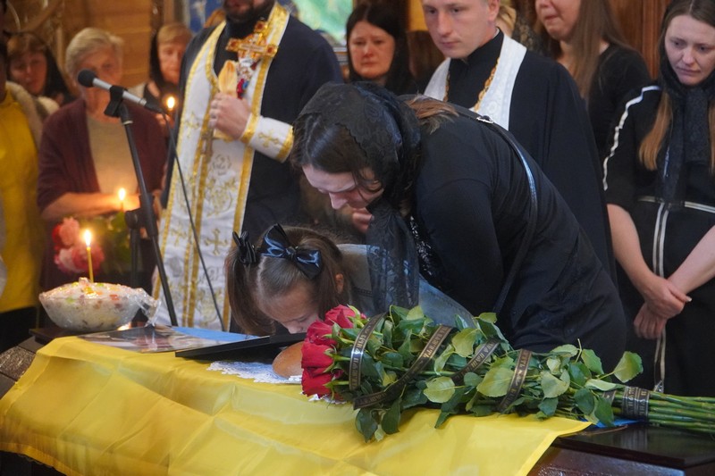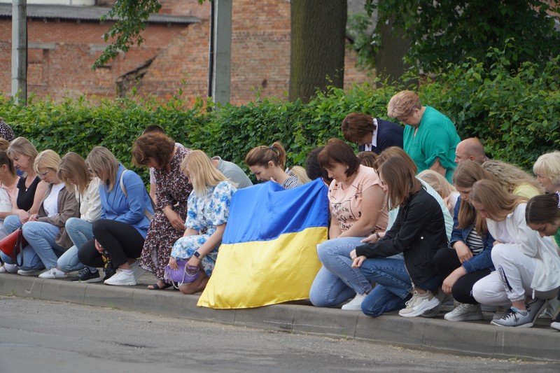 Скорботний кортеж, який рухався містом від моргу, а потім від дому на вулиці Ковельській, де минуло дитинство Героя, до храму Віри, Надії, Любові та матері їх Софії, супроводжував коридор шани, котрий сформували, стоячи навколішки із синьо-жовтими прапорами у руках, мешканці громади.