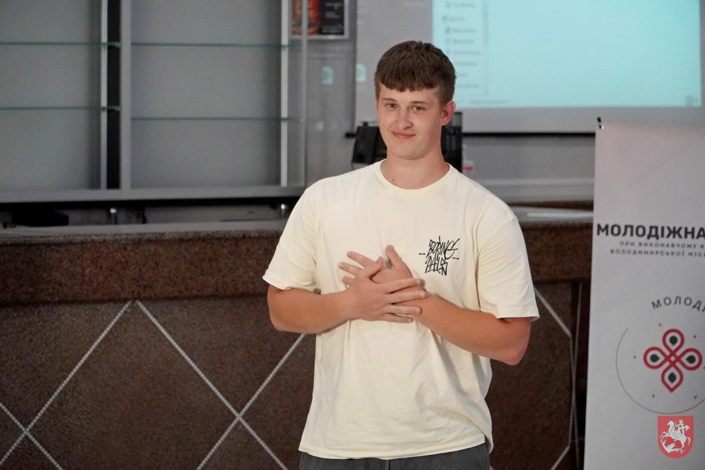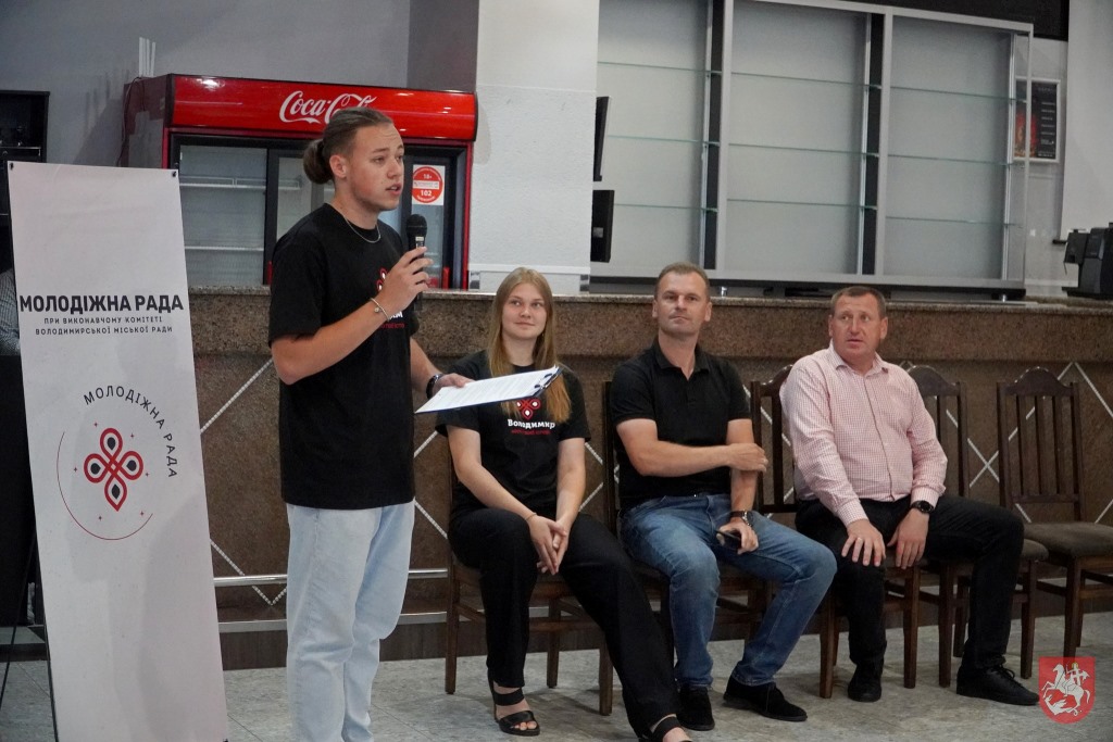 До учасників, яких організатори зібрали у приміщенні кафе “Движок”, звернувся Володимирський міський голова Ігор Пальонка. Привітав із прийдешнім Днем молоді, який в Україні відзначався наступного дня, в суботу. Побажав успіхів у громадських справах, креативних ідей, натхнення і довгоочікуваної Перемоги. До вітального слова приєднався начальник відділу молодіжної політики та спорту Вячеслав Петрук.