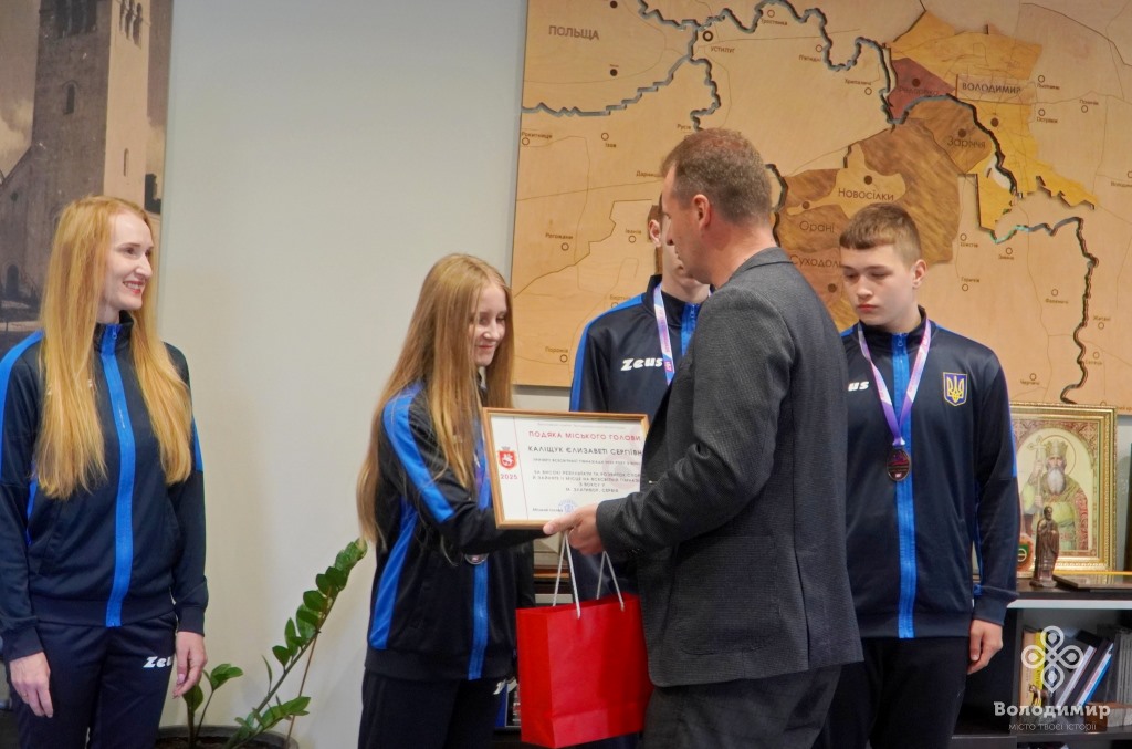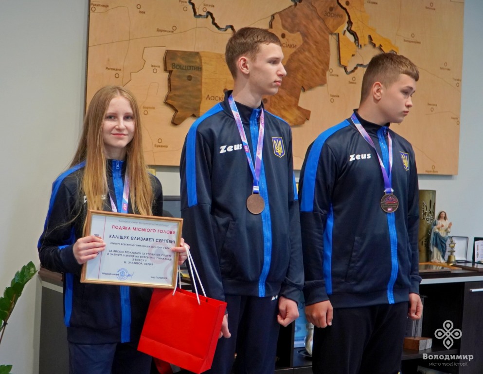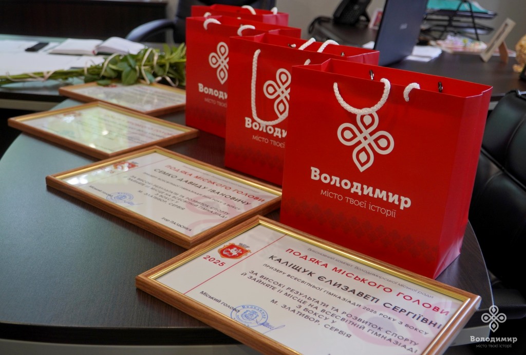 Подарунками та подяками, до яких додамо грошові винагороди, Володимирський міський голова відзначив вихованців СК “Фенікс” Володимирської ДЮСШ ім. Олексія Зінкевича та їх тренера Юлію Семко, які у складі збірної команди України з боксу здобули призові місця на Всесвітній Гімназіаді у Сербії.