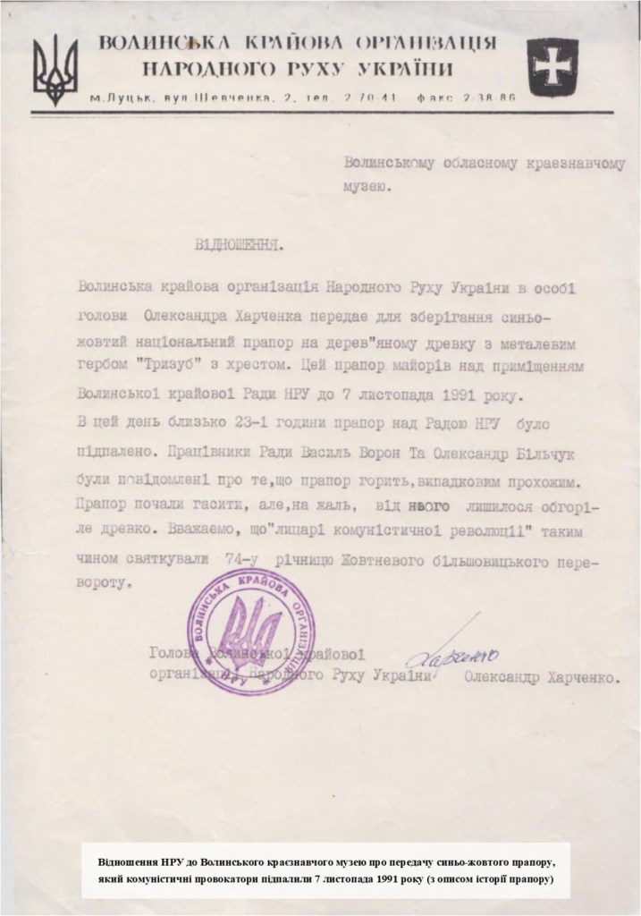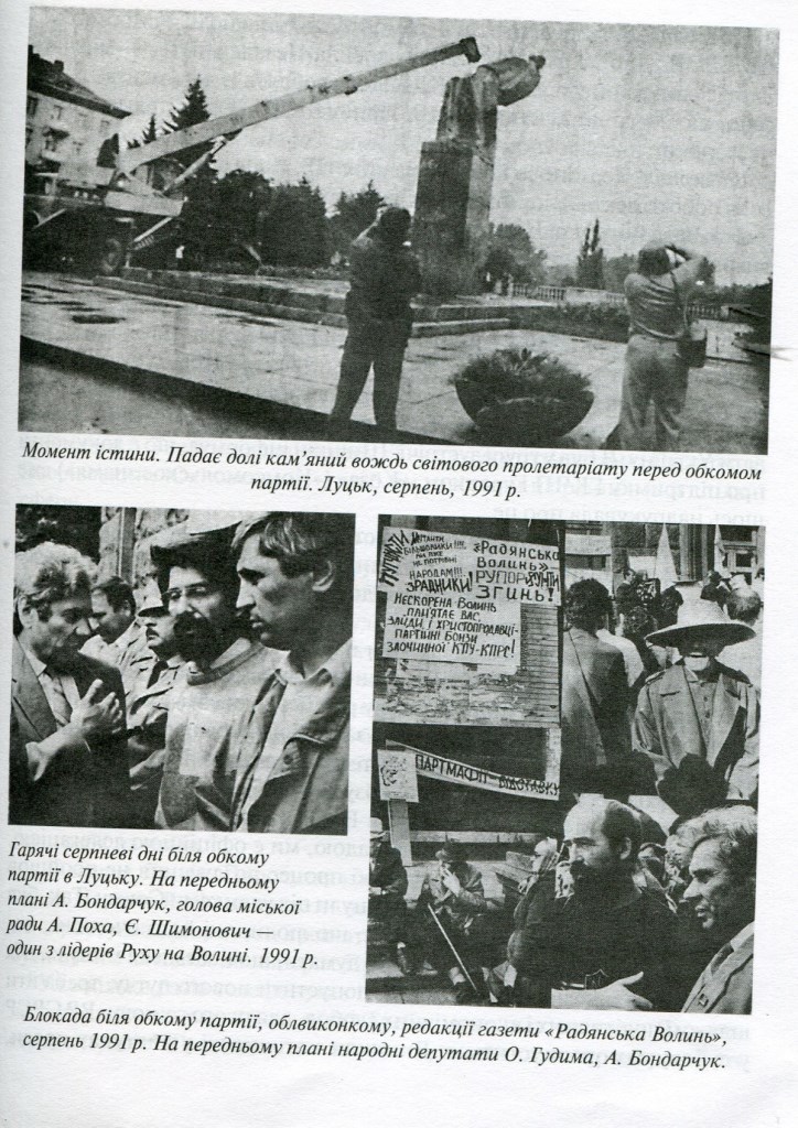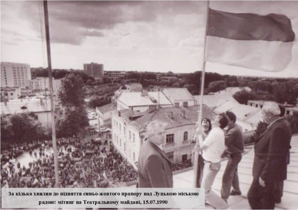 Пропонуємо ознайомитися з архівними документами та спогадами учасників тих подій, які розповідають, як у Луцьку ще в липні 1990 року підняли синьо-жовтий прапор над міською радою, де було утворено українську демократичну більшість. Як вже на другий день після проголошення Незалежності України у 1991 демонтували пам’ятник Леніну.