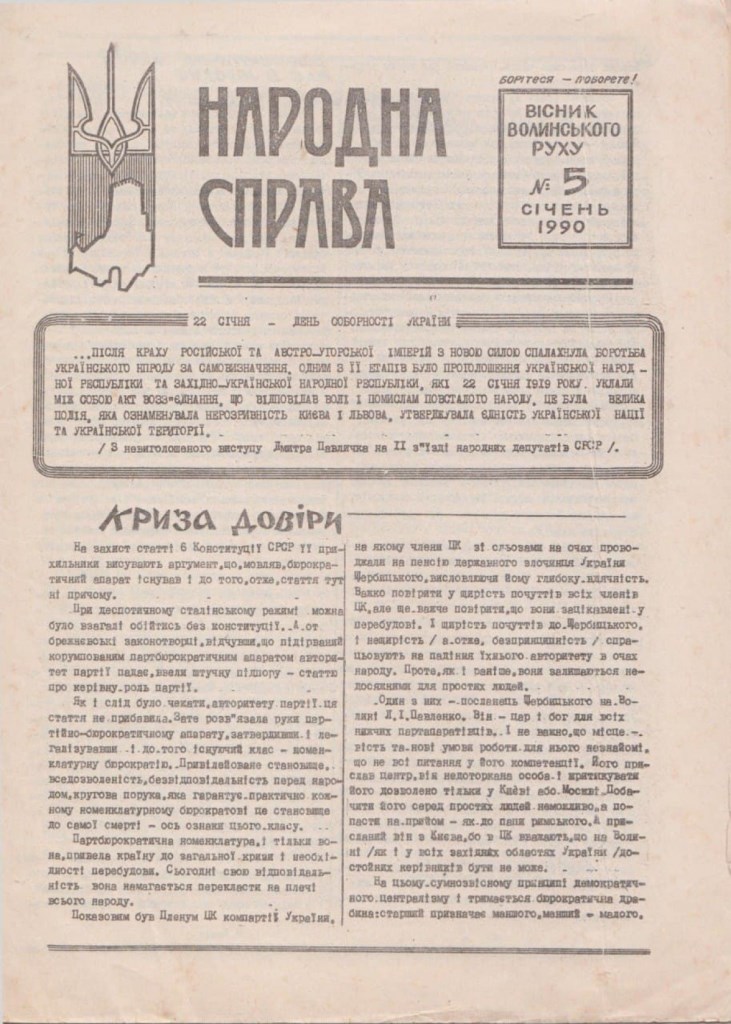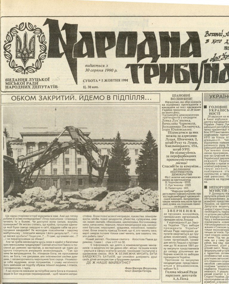 Ми розповідаємо про діяльність Волинської філії Української Гельсінської Спілки ще до проголошення незалежності, появу на Волині першої демократичної газети «Народна трибуна» та їх вплив на формування громадської думки волинян.