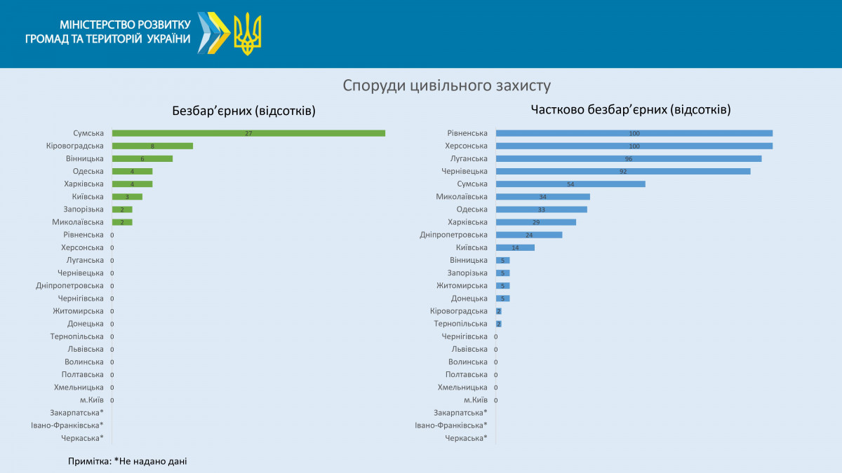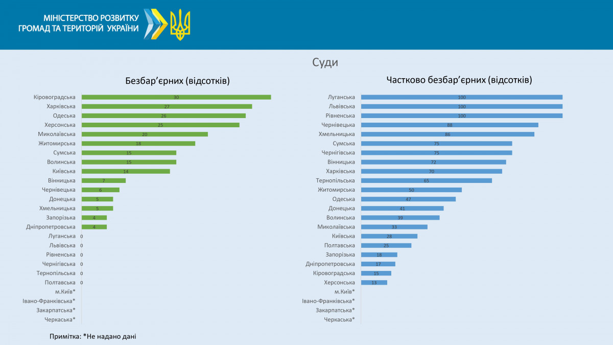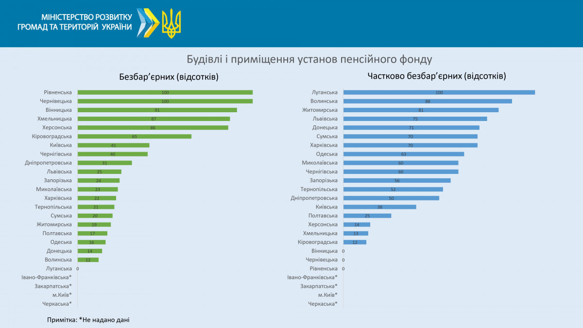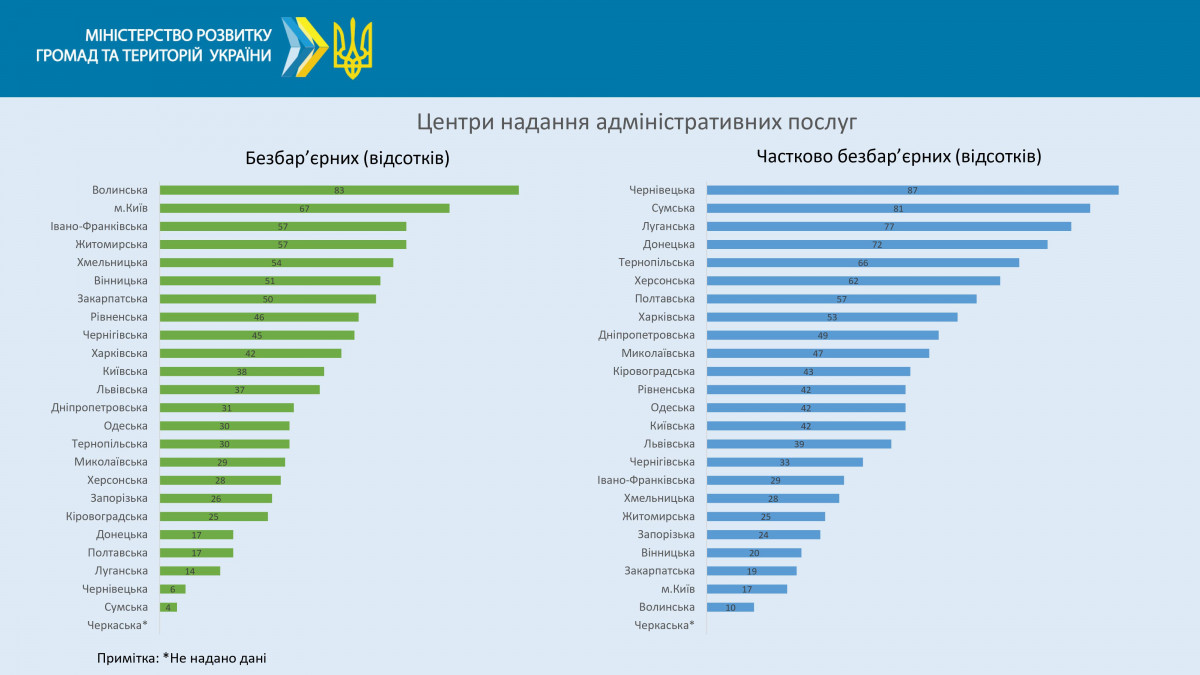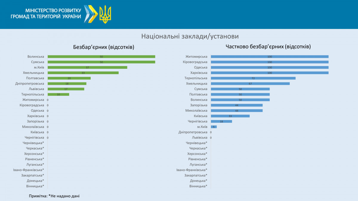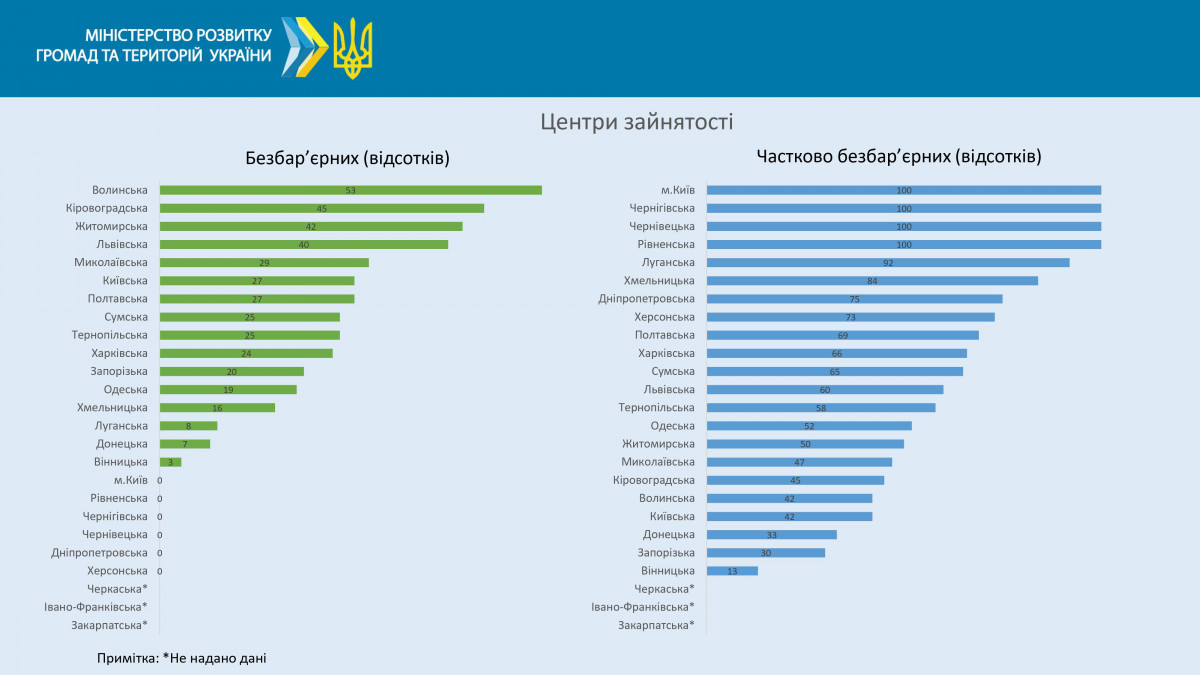 Міністерство розвитку громад та територій України за результатами моніторингу 2021 року провело рейтинг обласних, Київської міської держадміністрацій за ступенем безбар’єрності об’єктів фізичного оточення і послуг.