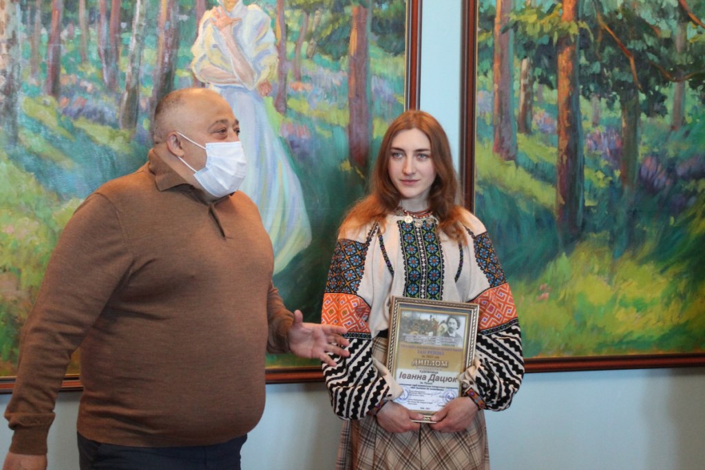Диплом про перемогу волинській художниці за дорученням голови ОДА вручив його заступник Анатолій Костик сьогодні, 26, під час презентації виставки її творів у стінах головного корпусу Волинського національного університету імені Лесі Українки. До слова, Іванна Дацюк є випускницею згаданого вишу.