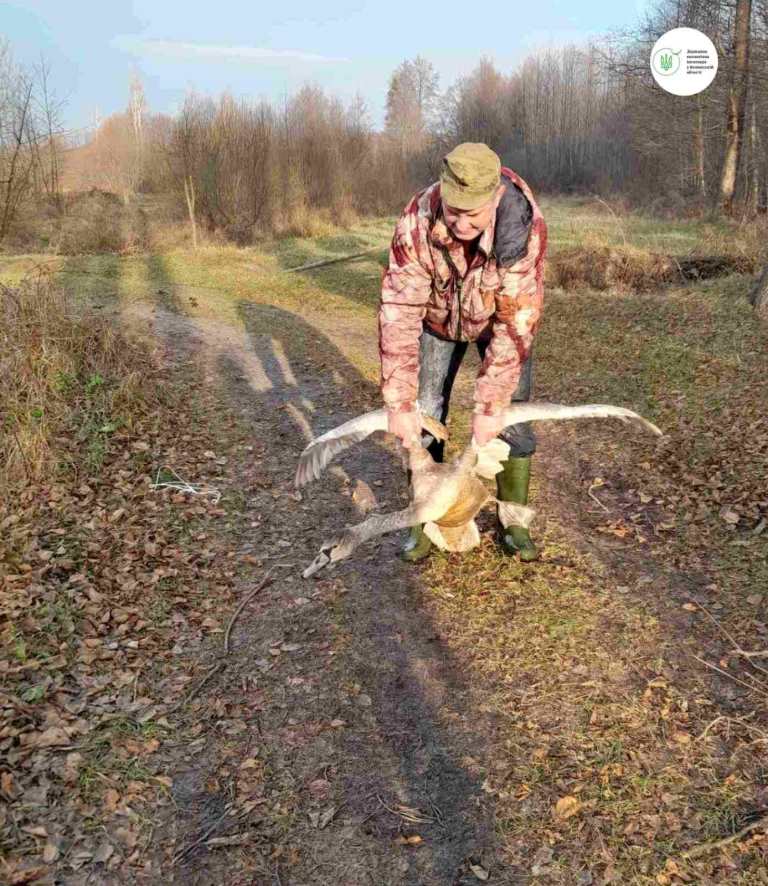 Небайдужі жителі Маневич зателефонували з цього приводу Володимиру Ольховіку, головному спеціалісту Державної екологічної інспекції у Волинській області. Разом із громадським інспектором Володимиром Хилюком, екологи відловили лебедя та перевезли автівкою на околицю села Гулівка Ковельського району, де випустили у природне середовище — в річку Стохід.