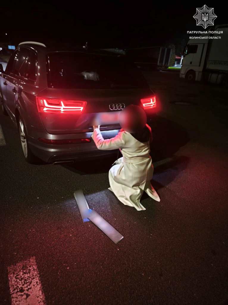 Жінка також повідомила патрульним, що мала при собі належні номерні знаки та після спілкування з інспекторами закріпила їх на авто.