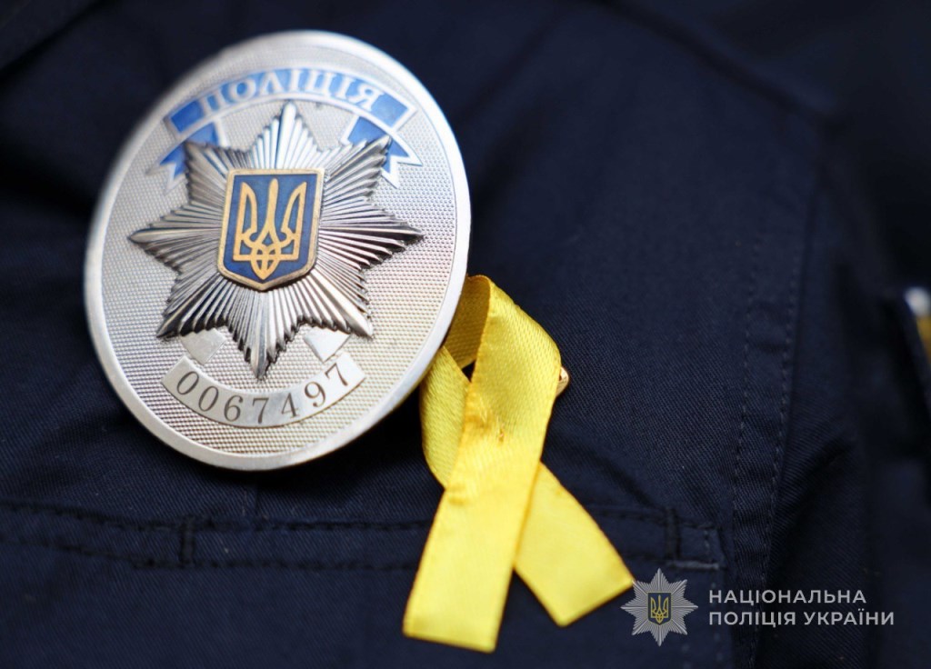 Поліцейські розмістили золоті стрічки на форменому одязі на знак солідарності онкохворих дітей та їхніх родин.