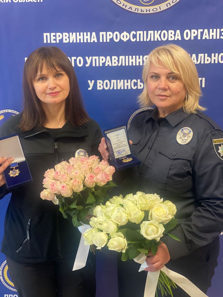 Сьогодні, 20 жовтня, медалі за активну участь у профспілковому русі отримали керівниця ювенальної превенції ГУНП Інна Остапович та інспектор сектору ювенальної превенції ВП Володимирського РВП Людмила Самолюк.