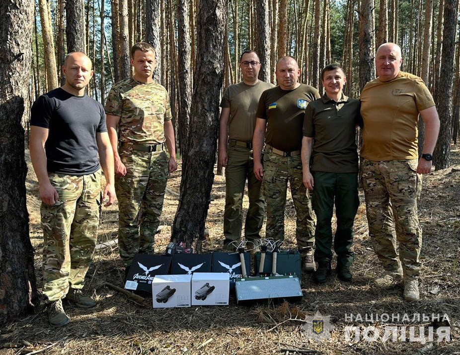 Цього разу поліцейським доставили тепловізори, старлінки, зарядні станції, реби, FPV-дрони, автомобіль, а також роботизований комплекс для евакуації поранених. Окрім того, поповнили запаси різних комплектуючих, батарей до дронів, засобів гігієни, медикаментів тощо.
