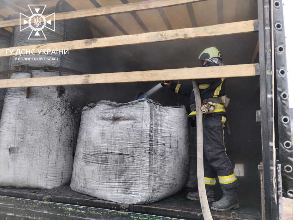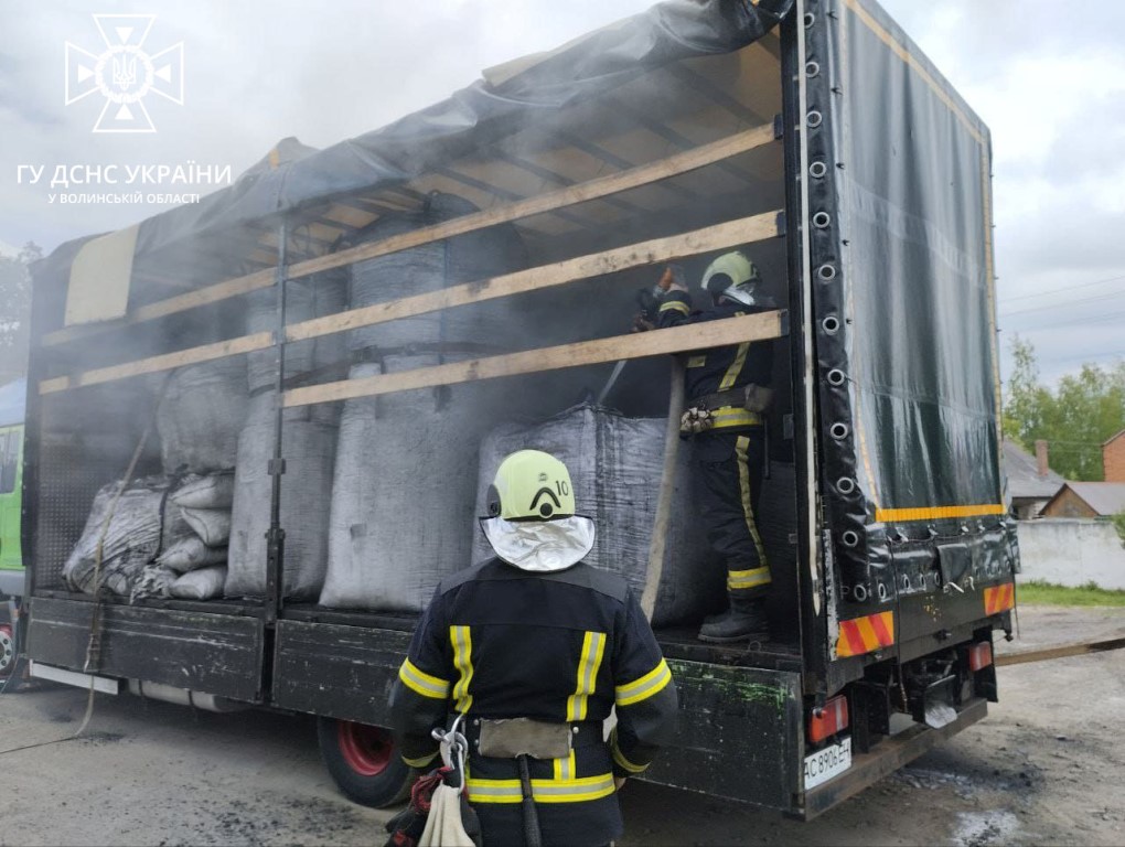 Вогнеборці 10-ї Державної пожежно-рятувальної частини міста Любомля ліквідували займання в вантажному автомобілі МАН, що перевозив деревне вугілля.