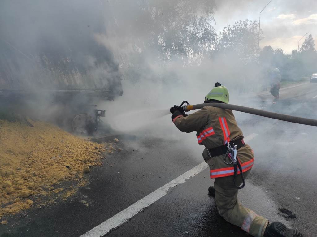 Сьогодні рятувальники 9-ї Державної пожежно-рятувальної частини міста Горохів спільно з працівниками місцевої пожежної охорони села Мар’янівка за допомогою водяного ствола приборкали займання вантажного автомобіля з кукурудзяними відходами в селі Журавники Горохівської громади.