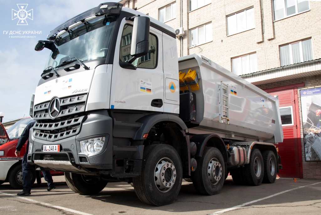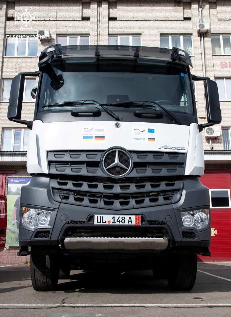 Вантажівка на шасі Мерседес вантажопідйомністю 27 тонн призначена для перевезення різних матеріалів під час проведення аварійно-рятувальних робіт та для здійснення заходів із запобігання надзвичайним ситуаціям. Мікроавтобус на шасі Фіат використовуватимуть для перевезення особового складу до місця проведення робіт.