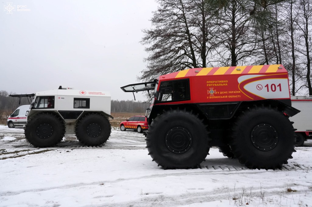 Відповідно до порядку взаємодії під час навчань відпрацювали спільні дії підрозділів ДСНС із загоном швидкого реагування Червоного Хреста щодо застосування спеціальної техніки “Богун” для подолання болотистих перешкод і оперативного надання допомоги людям під час надзвичайних ситуацій.