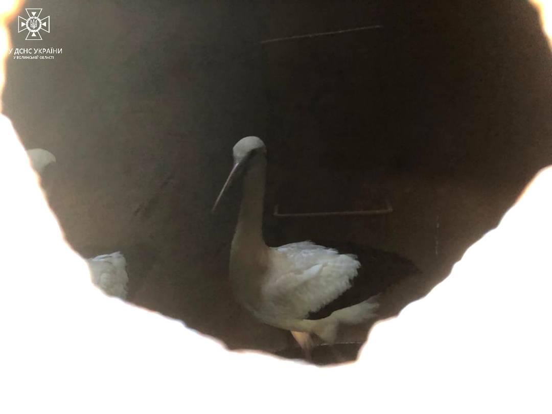 Волинські рятувальники врятували лелек, які провалилися у водонапірну вежу