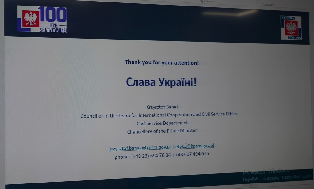 Помічник начальника Головного управління з міжнародного співробітництва, співробітники відділу соціально-гуманітарної роботи та психологічного забезпечення ГУ ДСНС області долучились міжнародного семінару, організованого в онлайн-трансляції з нагоди Дня Європи «Організація переговорного процесу у ЄС: досвід зарубіжних країн».