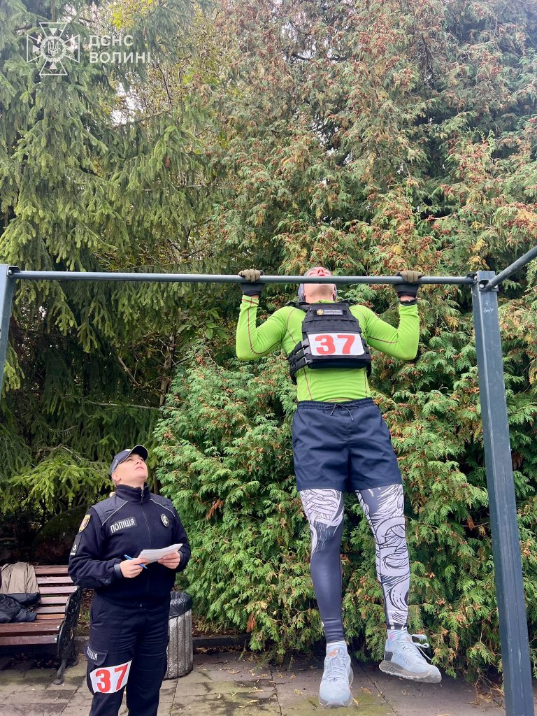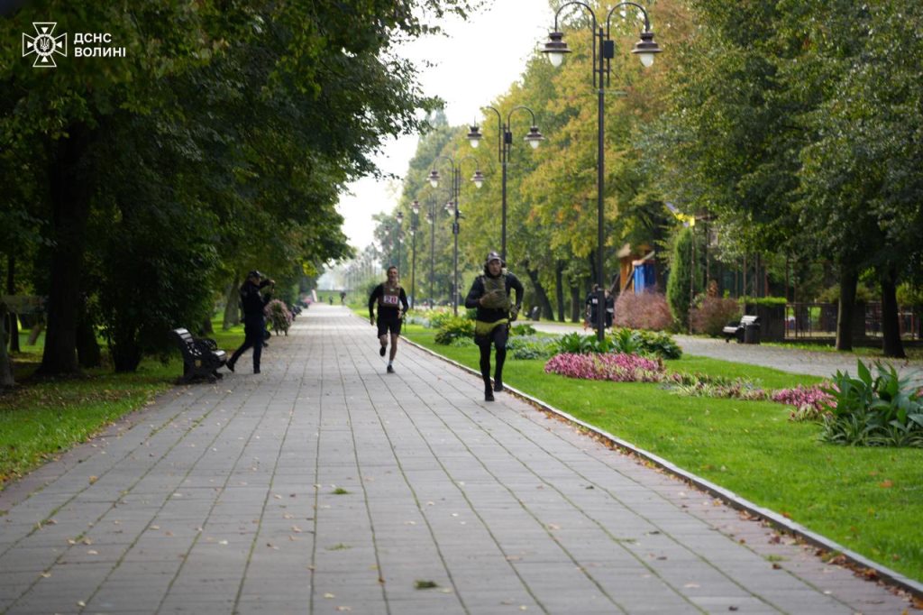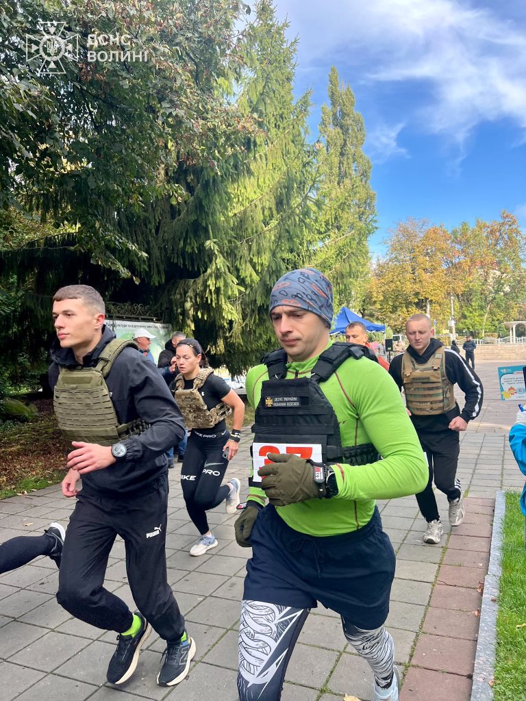 Сьогодні, 1 жовтня, у Луцьку відбувся захід за участю захисників і захисниць України. З нагоди свята учасники випробували себе в комплексі: біг на 1600 м, підтягування на перекладині (100 разів) присідання (300 разів), 200 віджимань від підлоги та знову 1600 метрів бігом.