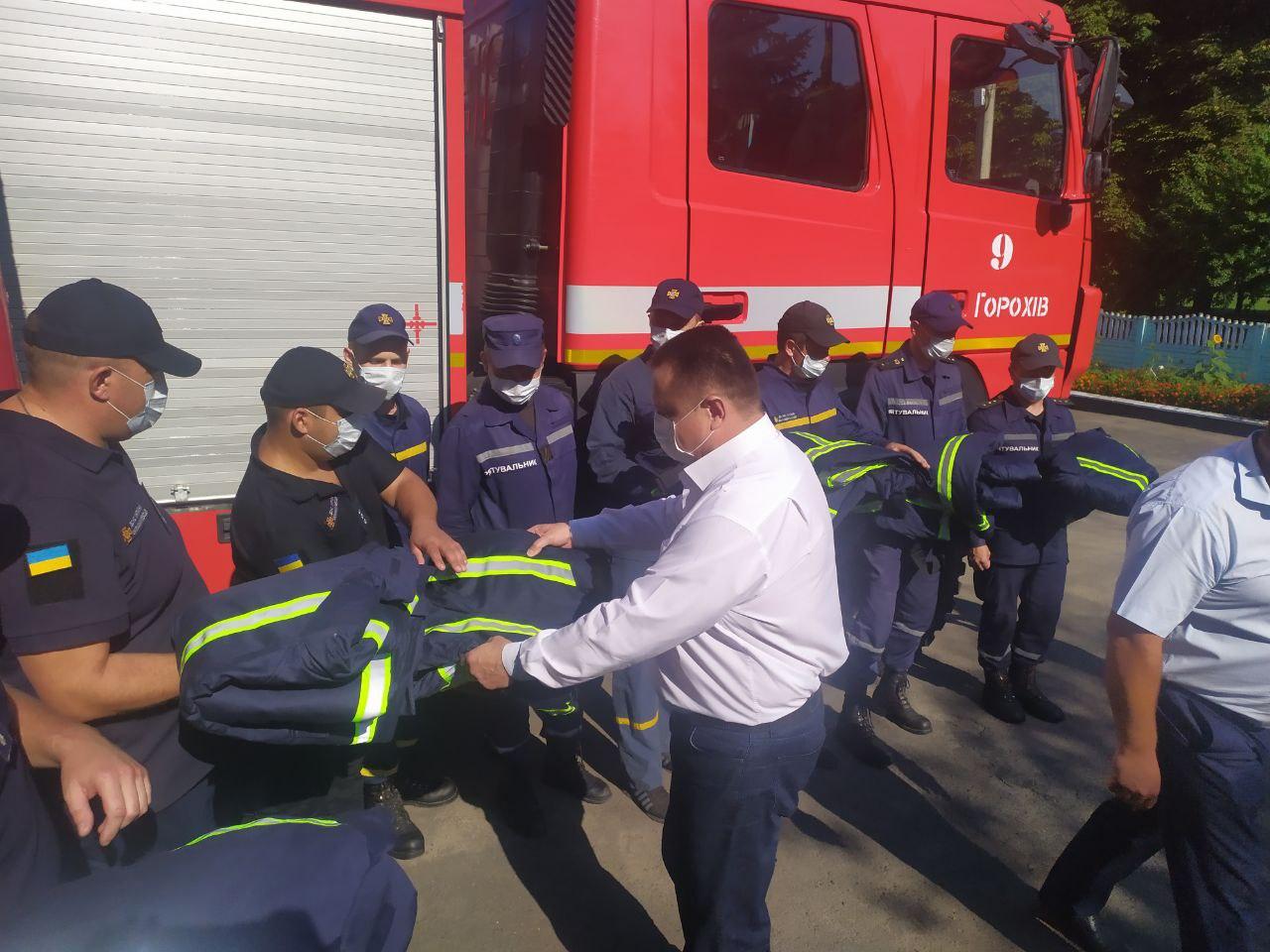 6 серпня горохівські вогнеборці отримали дев’ять штук спеціального бойового одягу для гасіння пожеж, який придбано за кошти районного бюджету. Вручили захисне спорядження голова районної державної адміністрації Сергій Мишленик та голова районної ради Тарас Щерблюк.