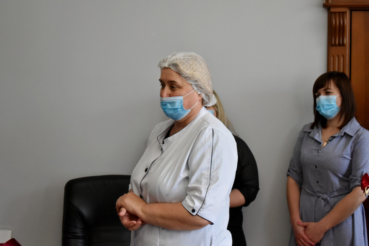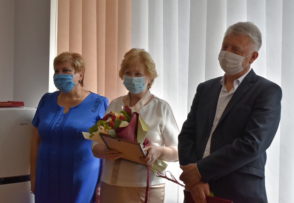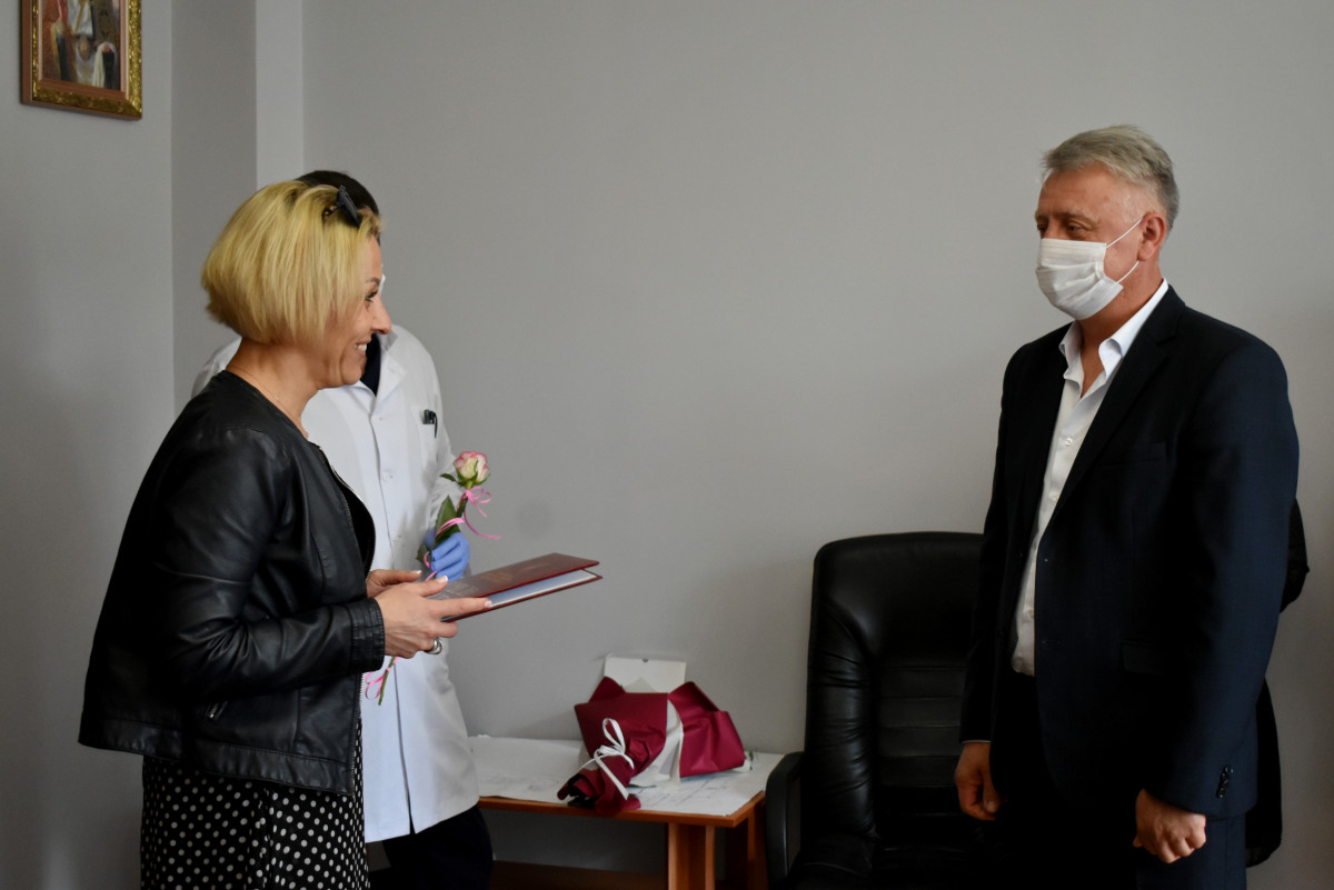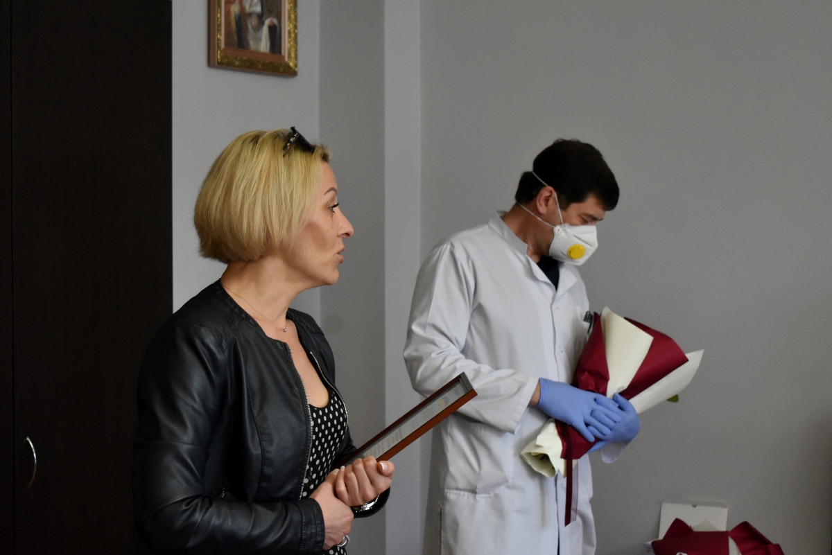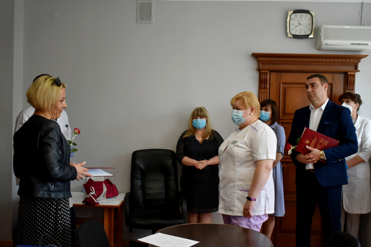 Почесні громади обласної державної адміністрації заступниця голови ОДА вручила т.в.о. директора Олександру Дударю, завідувачці клініко-діагностичної лабораторії Людмилі Мілінчук, лікарю-анестезіологу відділення анестезіології та інтенсивної терапії № 1 Сергію Сіваку та лікарю акушеру-гінекологу відділення лапороскопічної гінекології Олені Смотріній.