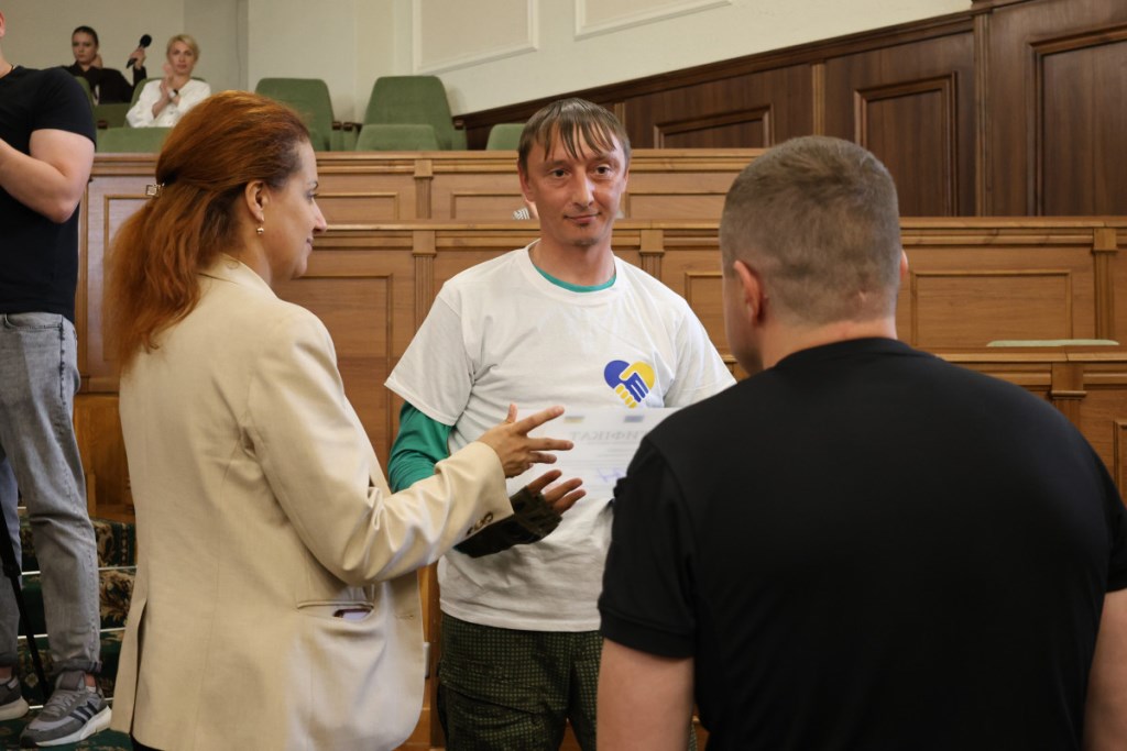 «Я щиро вдячна за службу та подвиг. Тішуся, що ми, як держава, можемо надати ветеранам можливість придбати власне житло. Маю надію, ви якнайшвидше придбаєте помешкання та відчуєте затишок», – звернулася з вітальним словом Наталія Калмикова.