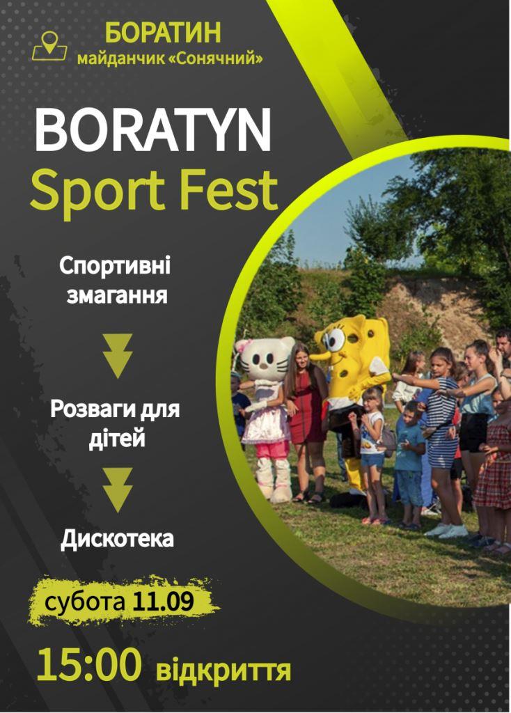Захід має сотні прихильників і вже став своєрідною спортивною візитівкою Боратина. Організатори «Boratyn Sport Fest 2021» обіцяють насичену розважальну програму, безліч сюрпризів та ще багато цікавого. На учасників свята чекають спортивні змагання (змагання зі спортивного орієнтування «Новачок» – 12:00, «Лабіринт», дуельна стрільба, конкурси та естафети для сімей), дитячі розваги (батут, надувна гірка, аніматори, шоу мильних бульбашок) та святкова дискотека.