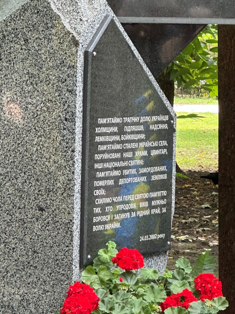 Присутні хвилиною мовчання вшанували пам’ять усіх, хто віддав життя за незалежність України, загинув у тюрмах, на засланні, «холмщан», життя яких обірвало вигнання, а також сучасних українських Героїв. Поминальну літію за загиблими відслужив настоятель храму Холмської ікони Божої Матері, протоієрей отець Михаїл. Учасники заходу поклали квіти до підніжжя пам’ятника жертвам депортацій.
