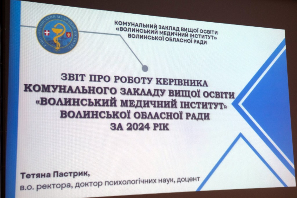 Члени наглядової ради сьогодні заслухали і звіт виконувачки обов’язки ректорки медінституту. До цієї частини засідання долучилися також вчена рада та трудовий колектив вишу. Тетяна Пастрик зазначила, що незважаючи на важкий воєнний час, освітній заклад не тільки вистояв, а й розвивався. Цьогоріч інститут отримав ліцензію на нову спеціальність Стоматологія, також значно розширено ліцензійні обсяги за спеціальностями медсестринство (магістерський рівень) та фармація, медсестринство (передвища освіта). А результати державної атестації випускників на підставі практично-орієнтованих іспитів за абсолютними та якісними показниками сягають 100 %. Високий рівень знань та фахової компетентності студенти- здобувачі спеціальності Екстрена медицина/парамедик підтвердили влруге поспіль здобувши І місце на «Міжнародних змаганнях з першої медичної допомоги середніх та професійних шкіл-2024» у Литві серед 37 команд.