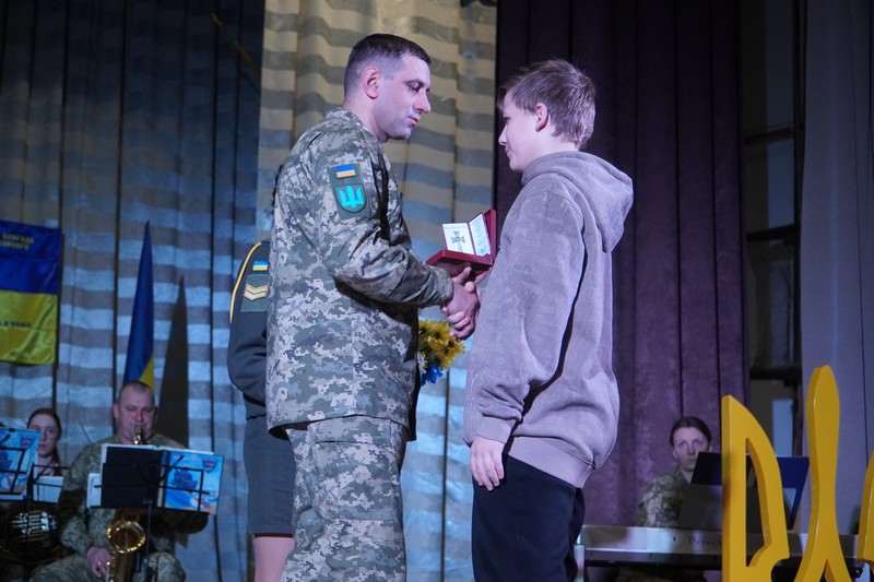 Доповнили церемонію вручення нагород пісенні та музичні виступи працівників центру культурних послуг та дитячої музичної школи. Зокрема, син полеглого захисника майора Олега Митошопа Зореслав разом із військовим оркестром виконав композицію “Ой у лузі червона калина”.
