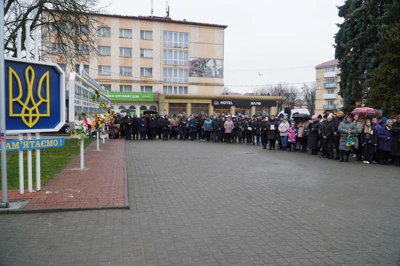 Розпочали захід із заупокійної літії, яку відслужили на площі Героїв священники Православної церкви України поблизу нещодавно доповненої портретами Дошки пам’яті полеглих у російсько-українській війні воїнів.